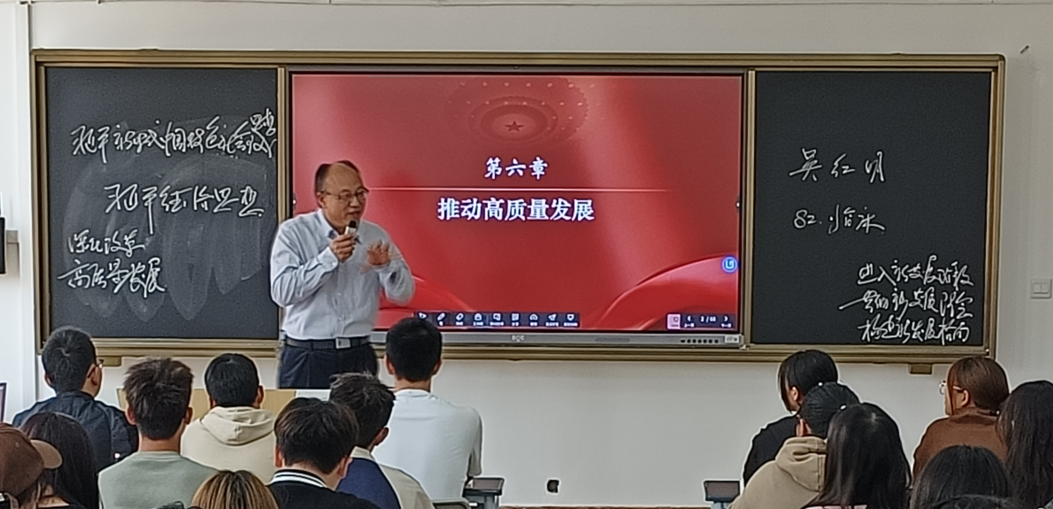 吴红明以“高质量发展”为题,围绕“认识高质量发展”“为什么要提出高质量发展”和“高质量发展的中国实践”三方面进行讲授,强调高质量发展是新时代我国经济社会发展的鲜明主题,是全面建设社会主义现代化国家的首要任务。吴红明以生动的语言和详实的案例引导学生理解习近平经济思想、认识新发展理念、感悟中国经济发展奇迹,为学生带来了一堂生动的思政课。