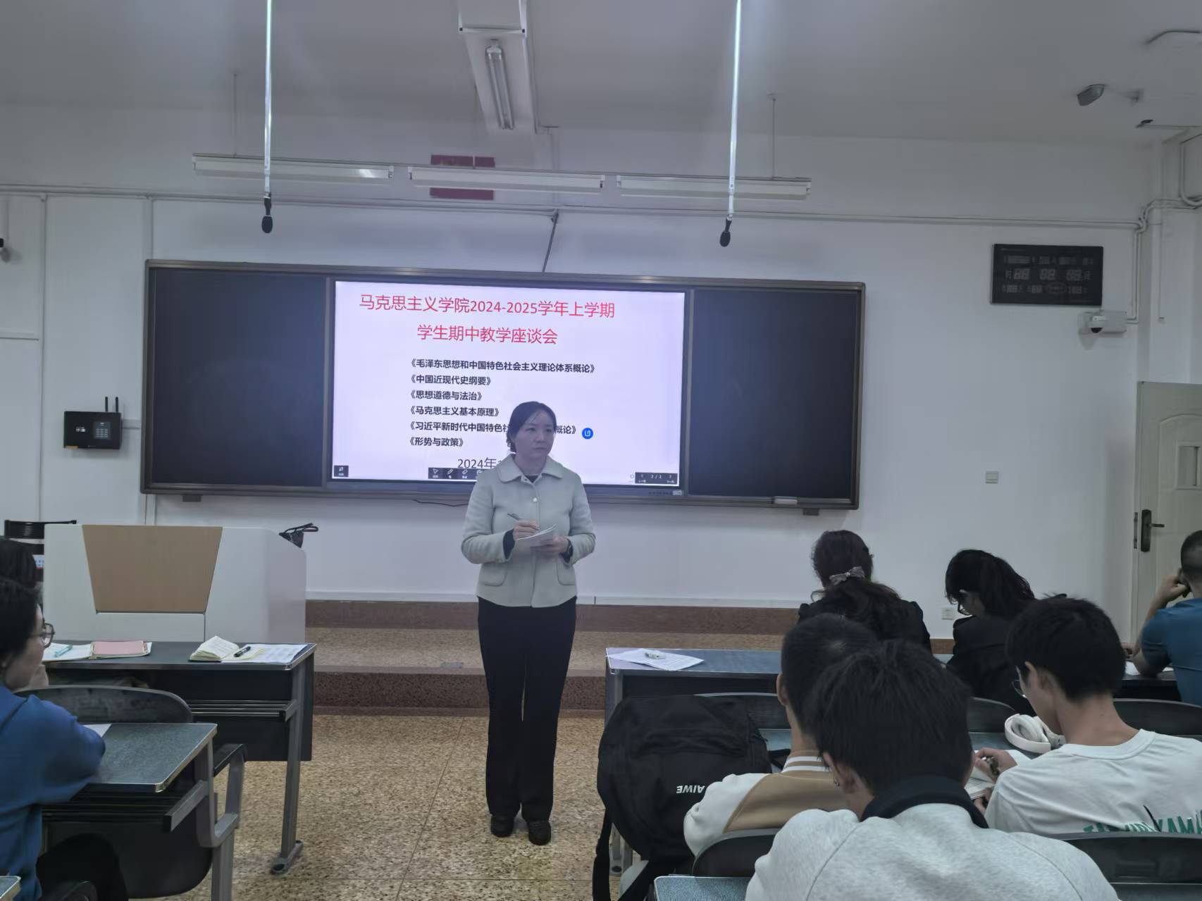 2024年10月22日下午,马克思主义学院在呈贡校区6101教室召开2024-2025学年上学期学生期中座谈会。座谈会由学院副院长王砚蒙主持,教学办人员、学院督导组代表、教研室主任、学院教师代表及2023-2024级学生代表共计80余人参加了会议。