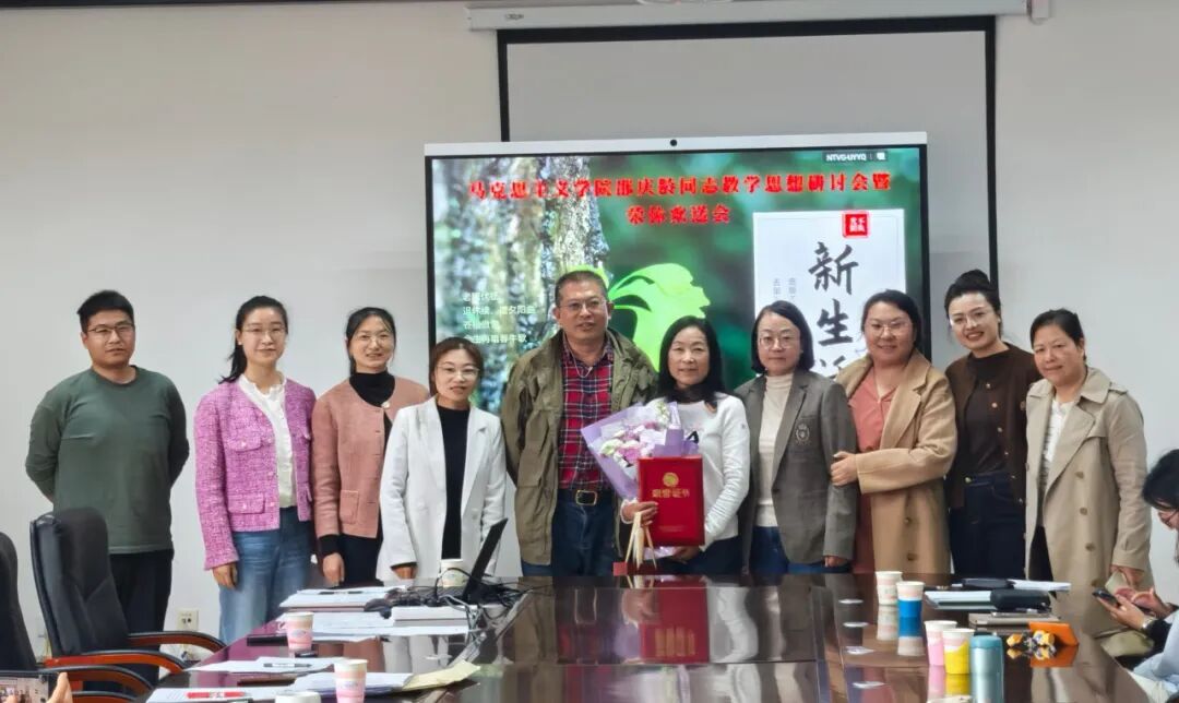 2025年10月31日,我院在209会议室为今年退休的邵庆龄老师举行了一场教学思想研讨会暨荣休欢送会。学院书记院长徐庆生、副书记和晶、副院长王砚蒙和全院无课教师参加。会议由教研室主任胡颖主持。