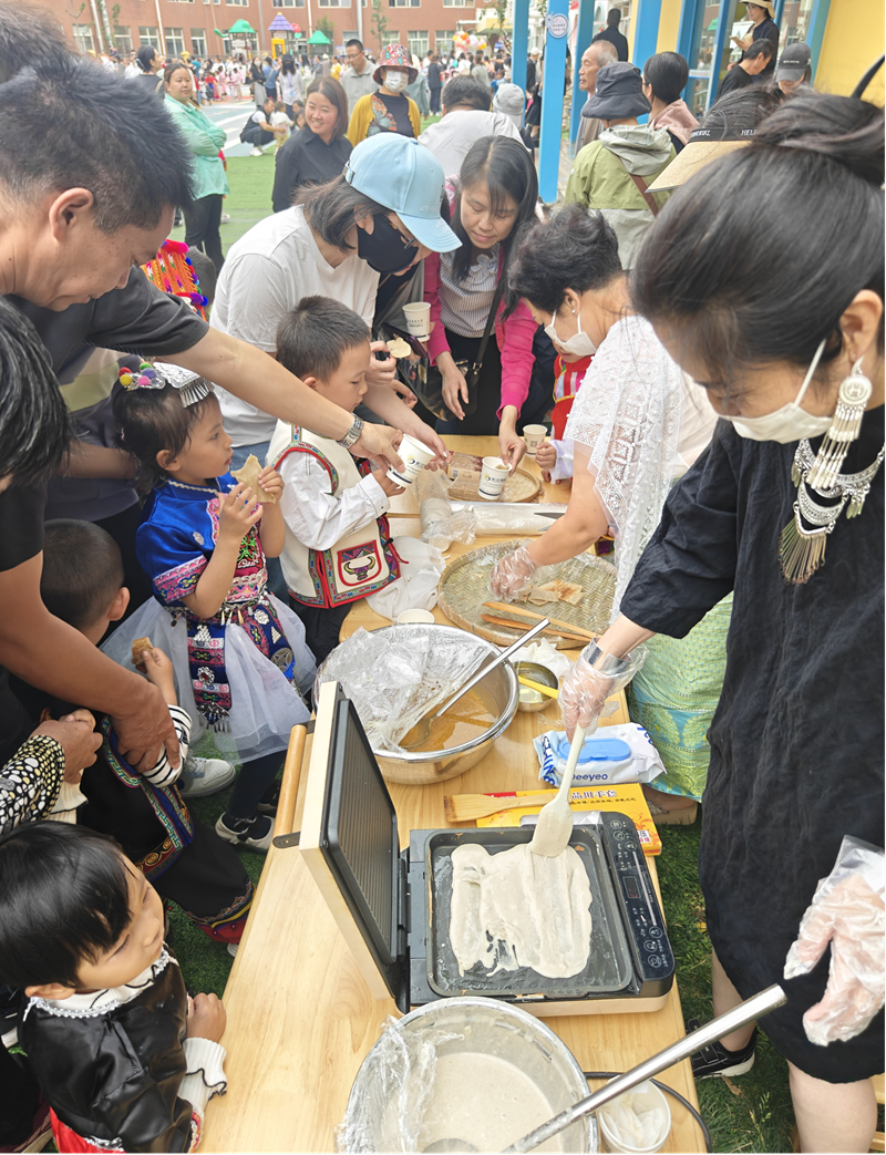 活动当天,幼儿园精心为孩子们准备了各民族特色游戏,幼儿教师布置了充满民族色彩的环境,让孩子们在浓厚的民族文化氛围中感受“各民族像石榴籽那样紧紧抱在一起”的民族情感。