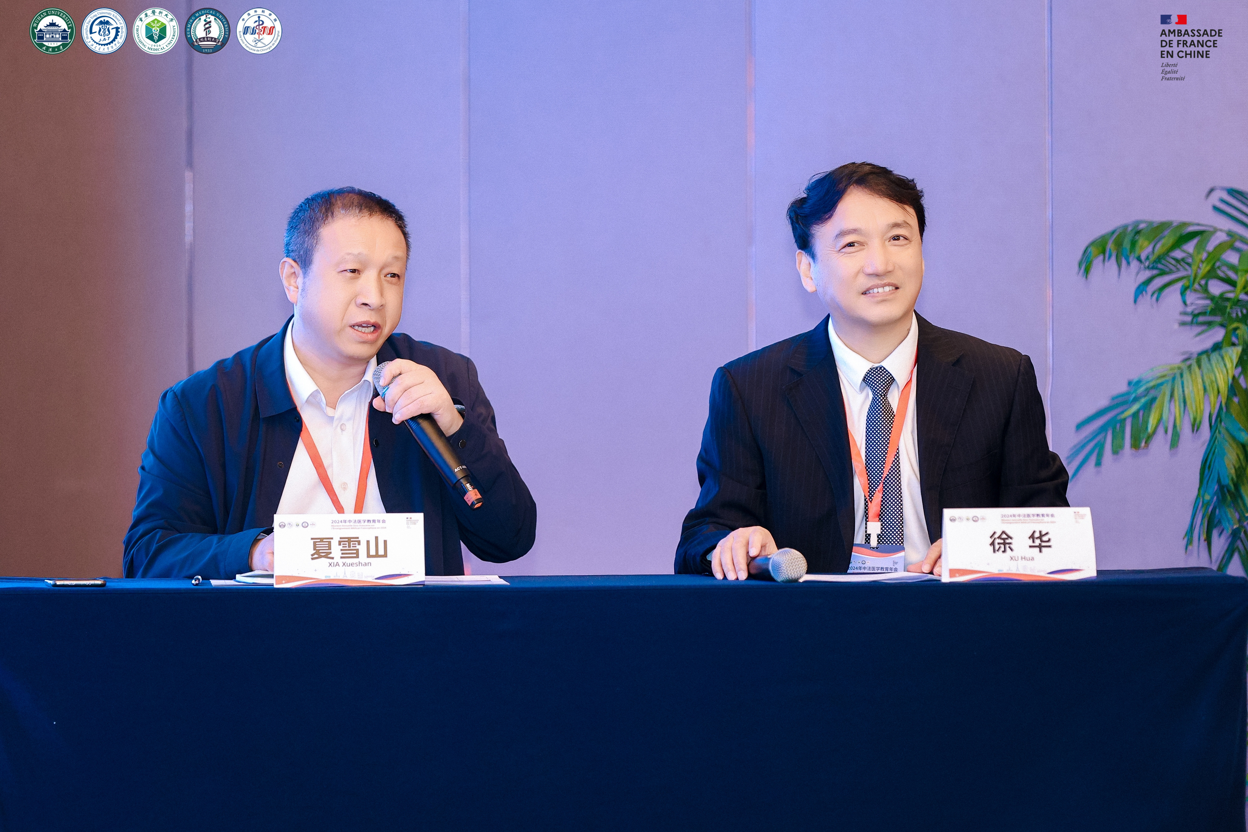 学校教务处副处长甘建骏、第一附属医院耳鼻喉科主任汤勇、第二附属医院肝胆胰外科四病区主任吴涛就学校法语医学教育的回顾与思考、法语医学教育质量提升等内容在会上进行交流发言。