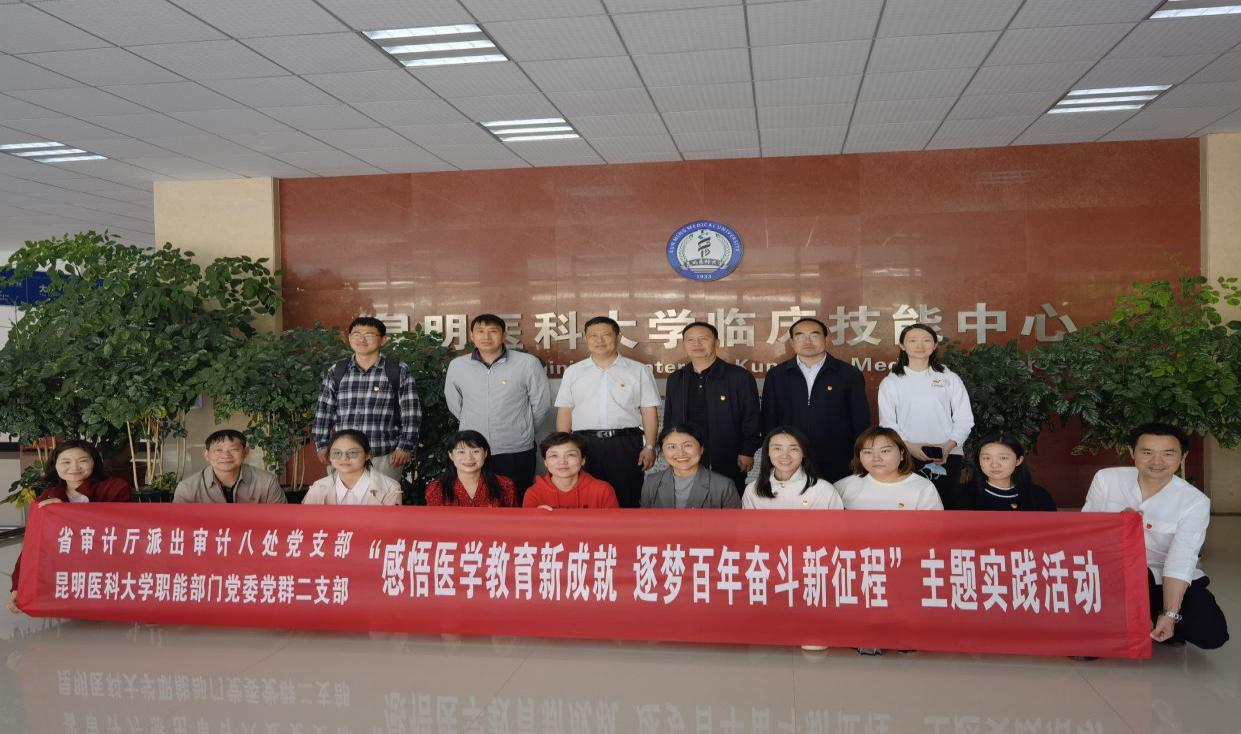 2022年3月25日上午,省审计厅派出审计八处党支部、beat365中文官方网站职能部门党委党群二支部与云南省审计厅派出审计八处党支部共同开展“感悟医学教育新成就,逐梦百年奋斗新征程”主题党日活动,参观beat365中文官方网站临床技能中心。