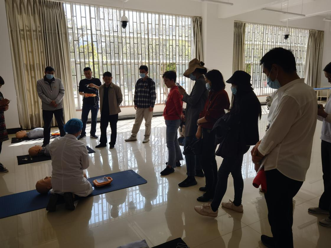 在临床技能中心老师的带领下,两个支部的党员共同参观了中心各实验室。在虚拟仿真实验室,党员们戴上VR头盔,利用虚拟仿真技术进入医院无菌手术室的空间。在心音听诊和心电图实验室里党员们用听诊器听到了来自心脏的声音,体验了描记心电图的过程,感受到了生命之光的魅力,了解了很多生命科学和医学健康知识。在穿刺实验室,中心老师示范了包括胸穿、腹穿、腰穿、骨穿等多项穿刺实验。最后,各位党员来到示教室,学习了心肺复苏项目中如何避免因溺水、触电等事故发生心脏骤停及一旦遇到心脏骤停的急救措施,及时启动紧急医疗服务系统,并进行心肺复苏实践。