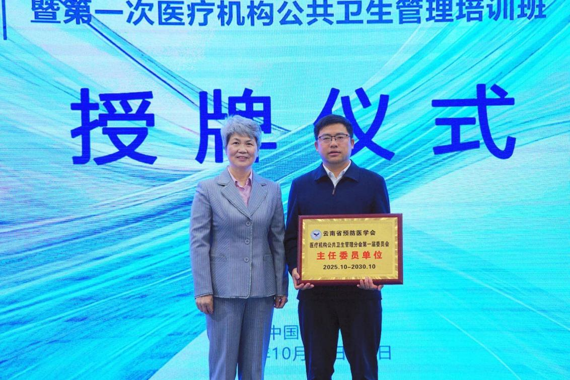 10月16日,经成立选举大会和相关程序,beat365中文官方网站第一附属医院成为“云南省预防医学会医疗机构公共卫生管理分会”主任委员单位,医院党委副书记杜安强代表医院接受授牌。