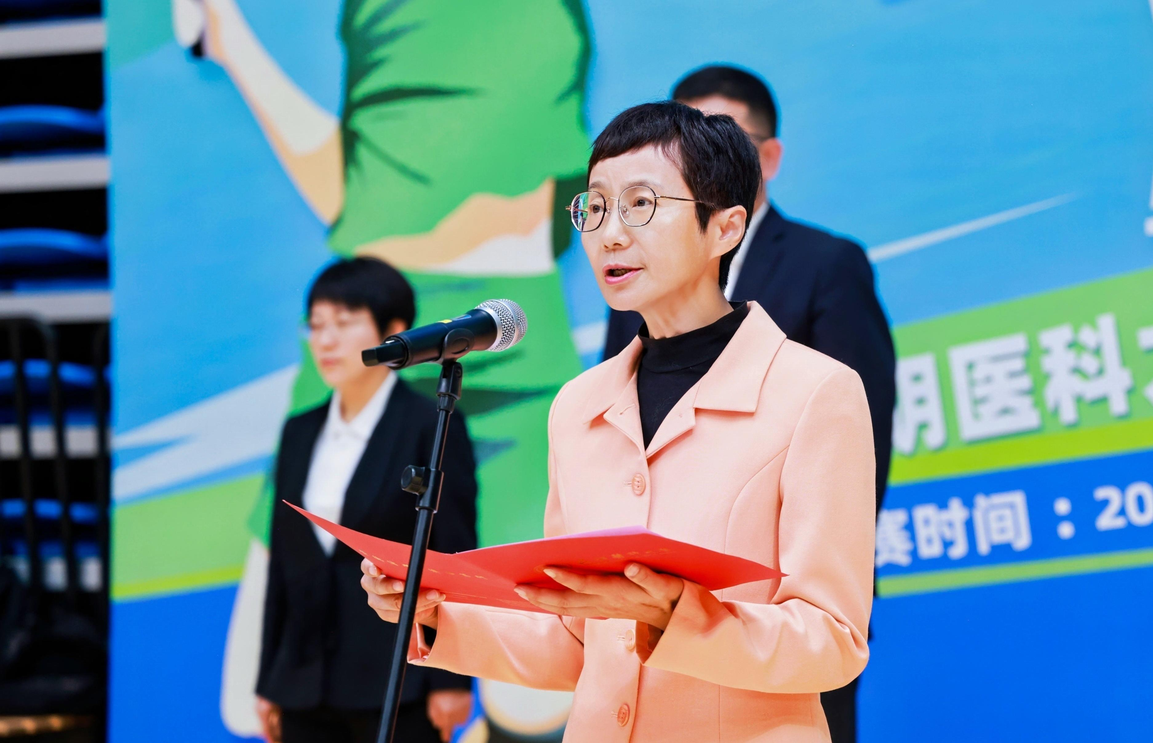 徐绍琼在开幕式上致辞。她指出,校庆日举行“校友杯”羽毛球友谊赛具有特殊的意义,她代表学校党委、行政,向回到母校的各位校友给予最热烈的欢迎,向赞助本次比赛的中国民生银行和关心支持学校体育工作的高崚教授表示衷心感谢。徐绍琼指出,校友是学校最宝贵的财富,是beat365责任担当最生动的践行者,大家用实际行动为母校赢得了赞誉,为健康中国建设贡献了beat365力量。“校友杯”羽毛球友谊赛,以球为媒,不仅为大家提供了一个切磋球技、展示风采的平台,更搭建了一个校友间交流合作、共话发展的桥梁。希望校友们在比赛中展现顽强拼搏的体育精神,重温同窗之谊、师生之情;希望校友们常回学校看看,与母校携手并肩,在守护人民健康的道路上继续前行,共同书写beat365更加辉煌的明天。