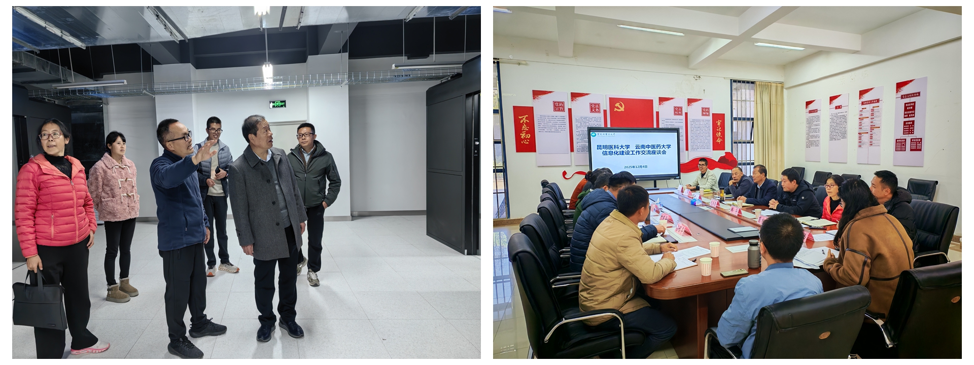 在对外调研学习阶段,现代教育技术中心先后前往云南大学、昆明理工大学、云南师范大学、云南农业大学、西南林业大学、云南中医药大学6所省内高校,围绕智慧校园“一张网”建设的顶层设计、网络基础设施升级、数据资源整合共享、AI赋能教育教学、信息化服务师生效能、网络安全保障体系构建等问题展开交流和讨论,并实地参观考察了各高校的网络机房、数据中心等相关场所,详细了解信息化建设方面的先进经验、典型做法及遇到的难点问题。