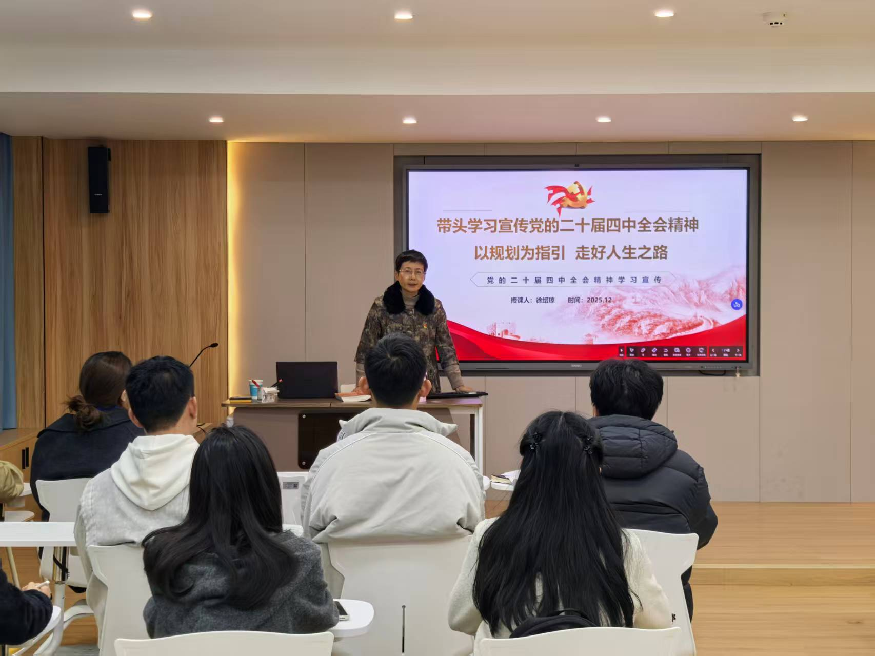 徐绍琼紧密结合党的二十届四中全会精神,系统阐述了4个方面的重要内容:一是深刻阐明“十五五”规划在国家发展全局中的重要地位;二是解读《中共中央关于制定国民经济和社会发展第十五个五年规划的建议》的主要内容;三是剖析社会发展领域的战略任务与重大举措;四是着重强调科学规划对个人人生成长的深远意义。她引用“凡事预则立,不预则废”,指出规划意识对国家与个人的共同价值,并寄语学生党员“四要四做”:一要珍惜时光,做时间管理的“规划师”;二要投身实践,做服务社会的“行动派”;三要深耕兴趣,做专业发展的“探索者”;四要志存高远,做人生愿景的“擘画者”。