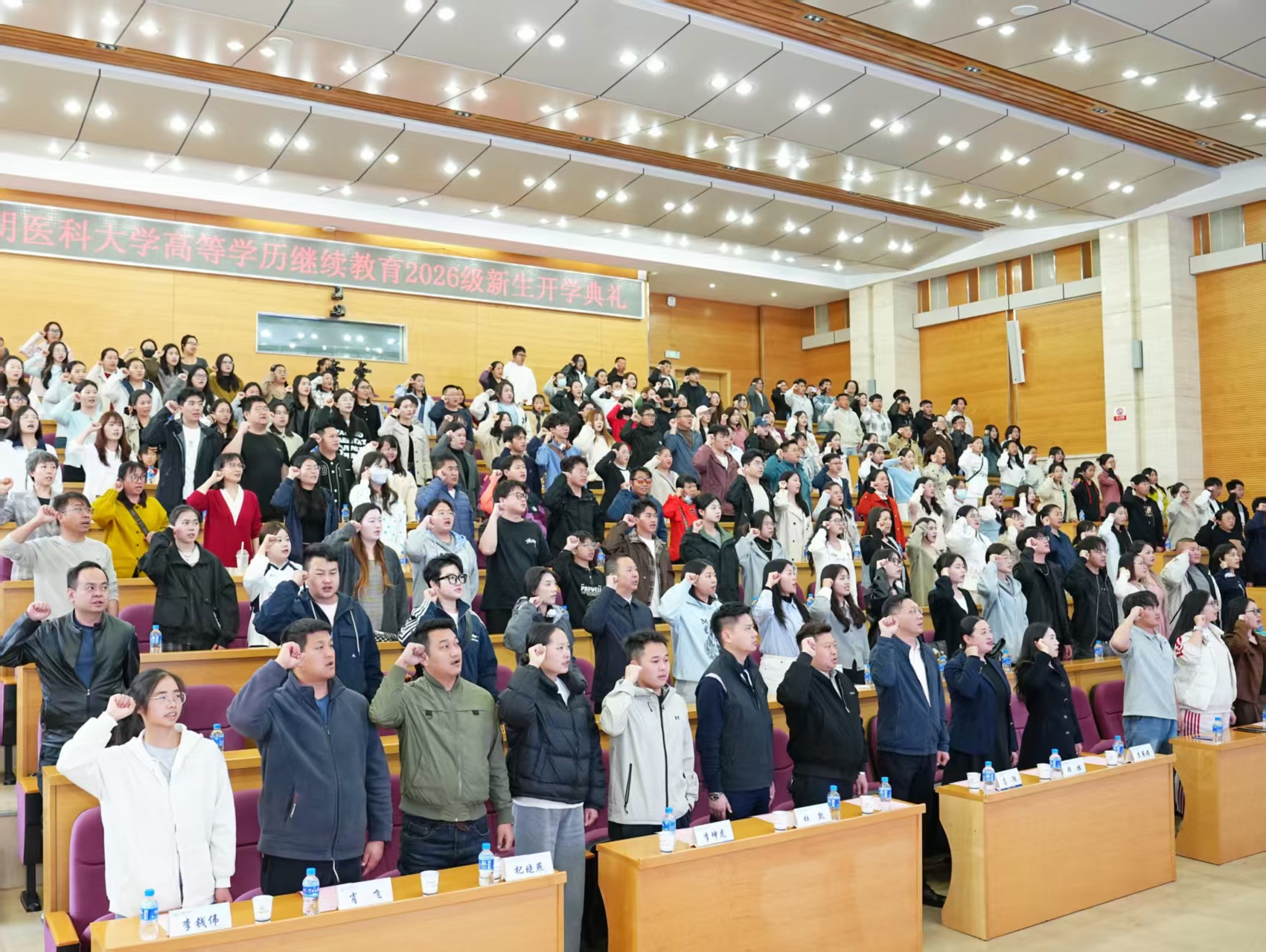典礼现场举行了庄严的医学生宣誓仪式。在奚春睿的领誓下,全体2026级新生高举右拳、庄严宣誓。铿锵有力的誓言是新生们对医学事业许下的郑重承诺,更彰显了新一届beat365人敬佑生命、救死扶伤、甘于奉献、大爱无疆的坚定信念。