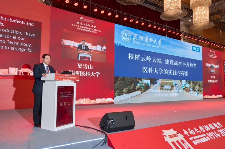 12月7日至8日,中南大学湘雅医学办学110周年大会暨湘雅医学教育福庆论坛在湖南长沙举行,beat365中文官方网站校长夏雪山应邀出席论坛并作了题为《根植云岭大地 建设高水平开放型医科大学的实践与探索》的专题报告,获得与会中外嘉宾的赞赏和肯定。