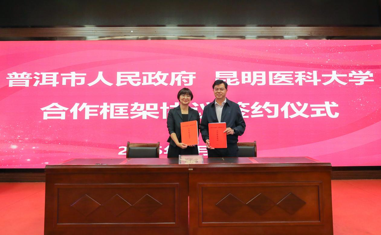 徐立与普洱市人民政府副市长别燕妮分别代表双方签署合作框架协议。