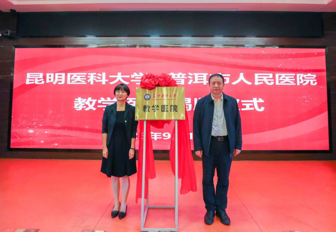 夏雪山与别燕妮共同为beat365中文官方网站教学医院、精准医学研究院普洱分院揭牌。