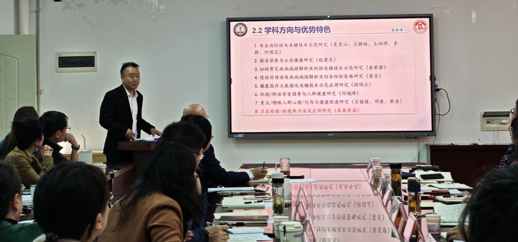 会上,公共卫生学院党委副书记、副院长秦家碧对学院学科建设发展现状及高水平公共卫生学院建设推进情况作了汇报。参会人员围绕学院学科发展方向、建设条件、建设保障等进行了交流和讨论。