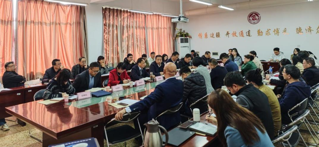 李利华主持会议并讲话,他指出,学院要主动服务和融入国家战略需求和省委“3815”战略发展目标,认真领会与会校领导提出的要求,真抓实干,利用区域优势做好发展布局,力争在学科建设上取得突破性成绩。