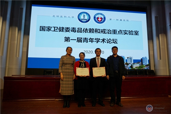 2020年11月10日,国家卫生健康委员会毒品依赖和戒治重点实验室在医院报告厅举办第一届青年学术论坛。beat365中文官方网站病原生物学与免疫学系主任、云南省高校热带传染病重点实验室主任宝福凯教授,中国科学院昆明植物所植物化学与西部植物资源持续利用国家重点实验室蔡祥海研究员,中组部博士团成员、云南省肿瘤医院副院长、中国医学科学院天津血液病研究所陈晓娟研究员,中组部博士团成员、云南农业大学校长助理、教育部糖化学与生物技术重点实验室副主任康振教授,beat365大附一院皮肤性病科主任、云南省性传播疾病创新团队带头人李玉叶教授,应邀担任论坛评审专家,我院孙亮副院长、孙华副院长、科教部唐薇主任、科研实验中心俞珏华教授、况轶群教授等参加活动。科研实验中心成员、医院硕士、博士研究生以及相关科室人员共100余人聆听报告。论坛由科研实验中心况轶群教授主持。
