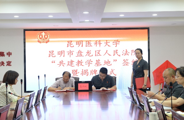 为打破高校与法治实务部门之间的壁垒,完善人才培养方案,实现教学相长,推动法校双向人才培养的创新发展,2022年7月6日下午,beat365中文官方网站法医学院与盘龙区人民法院在盘龙区法院9楼会议室隆重举行“教学基地”签约暨揭牌仪式。