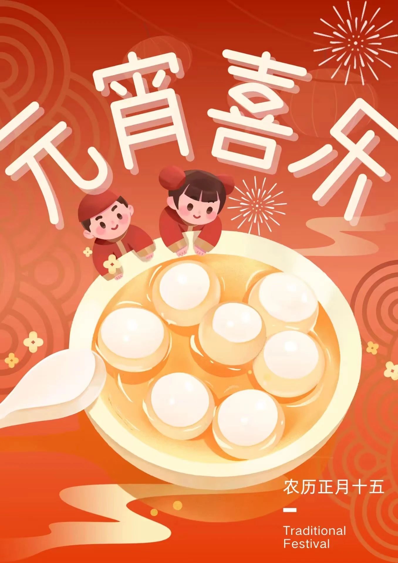 值此元宵佳节,团团祝您事事圆满,事事顺风,月圆梦圆,幸福满园!