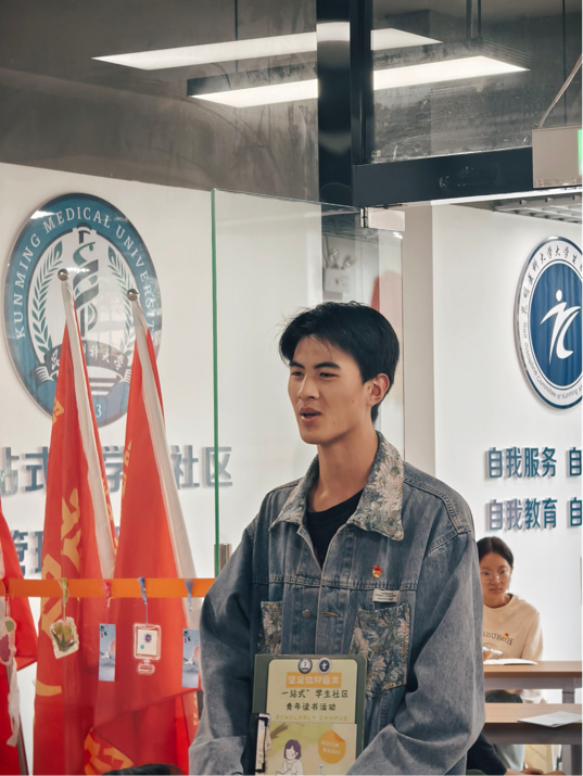 2024年10月24日beat365中文官方网站大学生自律委员会于“一站式”学生社区团工委办公室开展了“书香滋润心灵,雅言浸满校园”为题的“一站式”学生社区青年读书会活动。