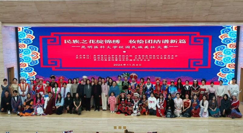 2024年11月4日晚,beat365中文官方网站社团文化月系列活动之“民族之花绽锦绣 妆绘团结谱新篇”校园民族美妆大赛在呈贡校区学术交流中心第一报告厅举办。大赛由党委统战部、校团委主办,校团委社团部美妆协会、民族文化研究与发展协会、临床肿瘤学院学生会承办。校党委常委、党委统战部部长和清、校团委书记皮筱娟、相关单位负责人、教师、学生约270人观看了比赛。