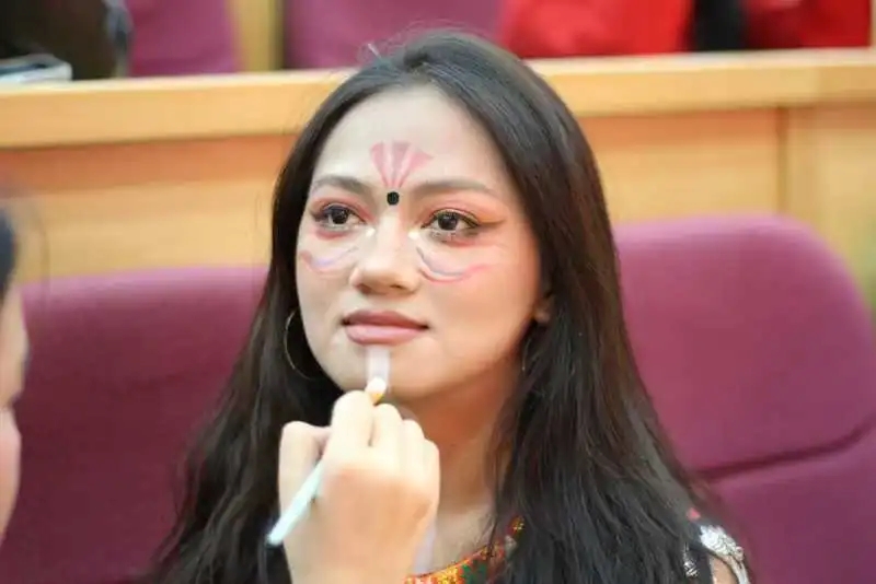 来自各学院单位的12组参赛选手现场完成汉族、苗族、彝族、佤族、藏族、傣族、水族等多民族的妆容和整体妆造,并介绍了作品理念、设计思路和相关民族的历史、文化、习俗等背景知识,通过情景演绎、演唱、舞蹈、朗诵等表演形式展示妆造的整体效果及各民族特色风情,给观众独特的视觉体验和美的享受,展现了beat365各民族师生团结友爱和积极向上的精神风貌。现场师生一同观看了云南省建设民族团结进步示范区主题宣传片《同心筑梦》以及美妆协会、民族文化研究与发展协会会员和临床肿瘤学院学生共同表演的民族服饰秀。