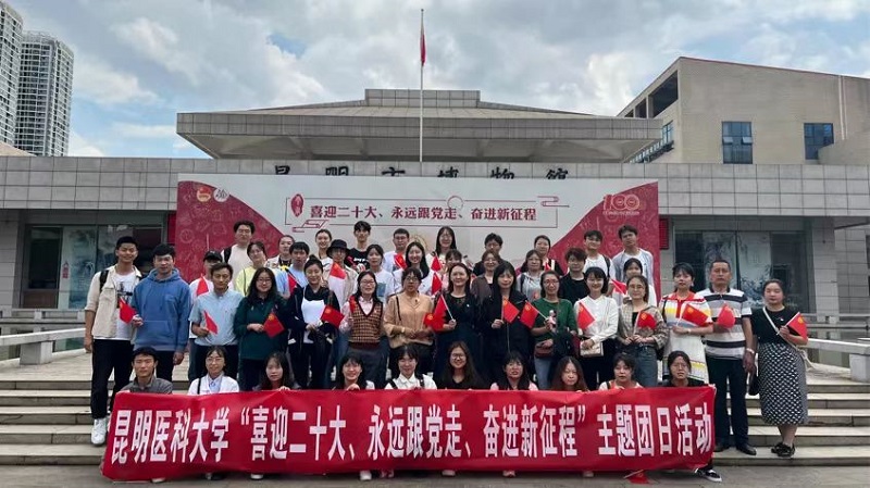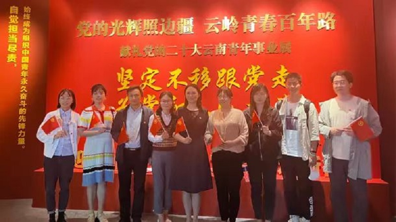 为深入学习贯彻习近平总书记在庆祝中国共青团成立100 周年大会上的重要讲话精神,学习党领导中国青年运动的百年光辉历程,2022年5月27日,beat365中文官方网站组织开展“喜迎二十大、永远跟党走、奋进新征程”主题团日活动。校团委委员、各学院(单位)团委负责人、各学生组织直属团支部学生骨干、2022 年青马工程校级培训班学员到昆明市博物馆参观“党的光辉照边疆 云岭青年百年路”云南青年事业展。