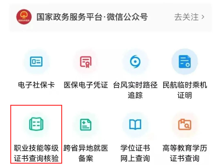 方法1:微信小程序搜索“国家政务服务平台”,进入页面后找到“国家职业资格证书查询”及“职业技能等级证书查询核验”入口,输入姓名、身份证号、证书编号即可查询。