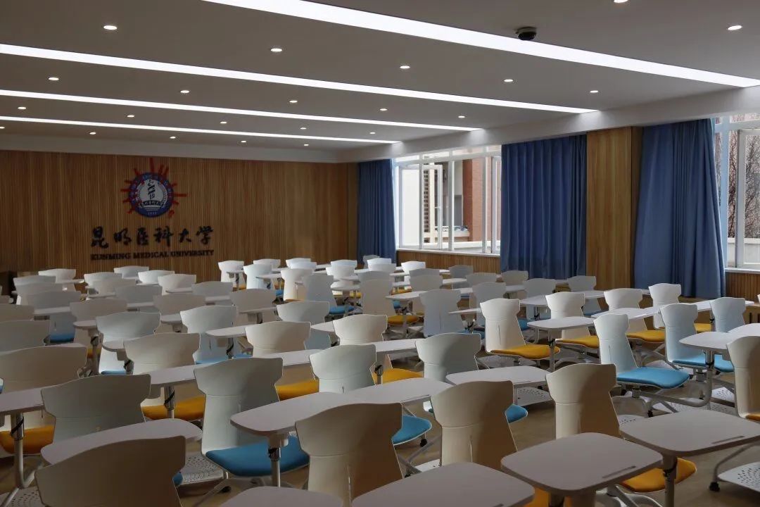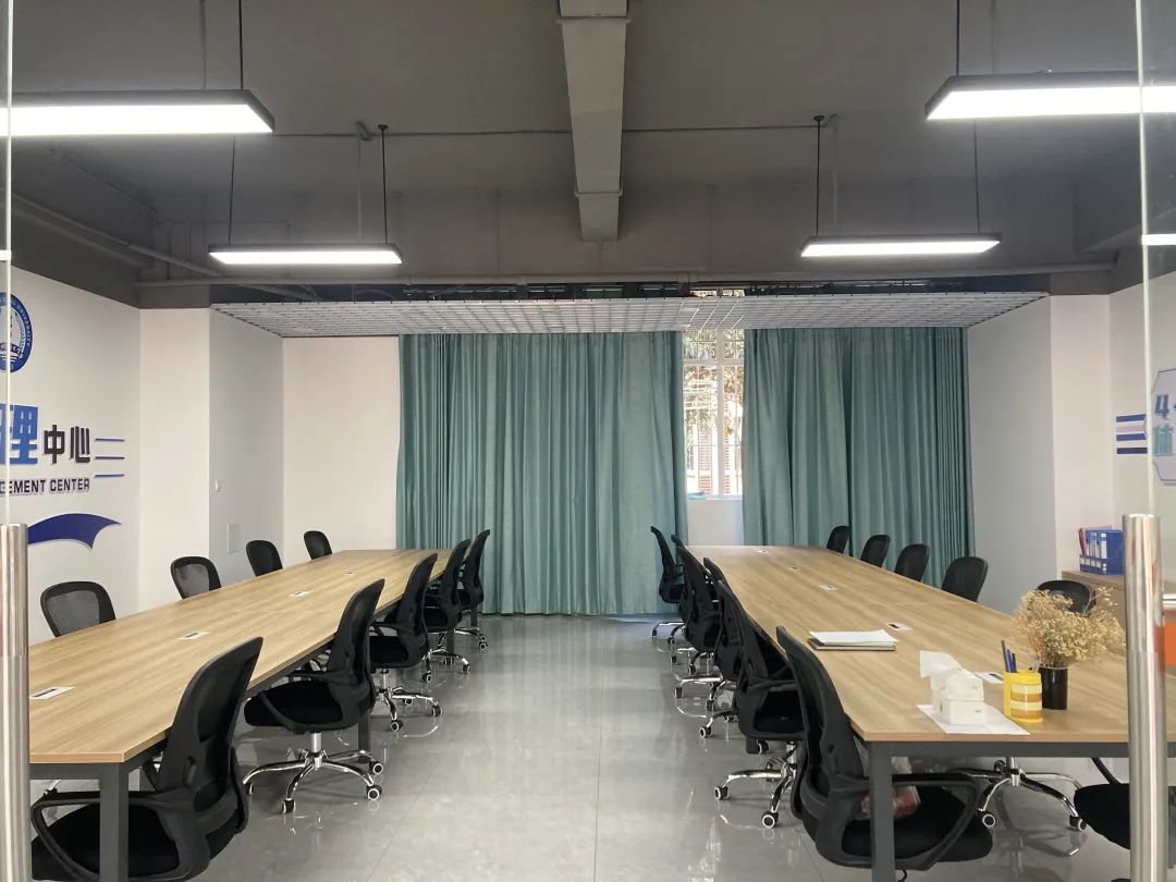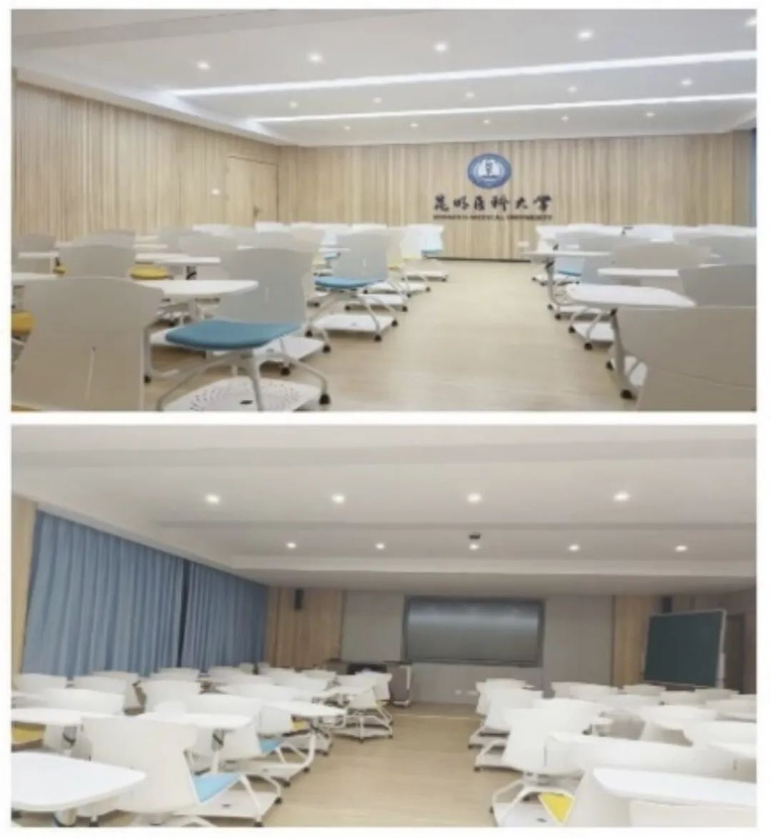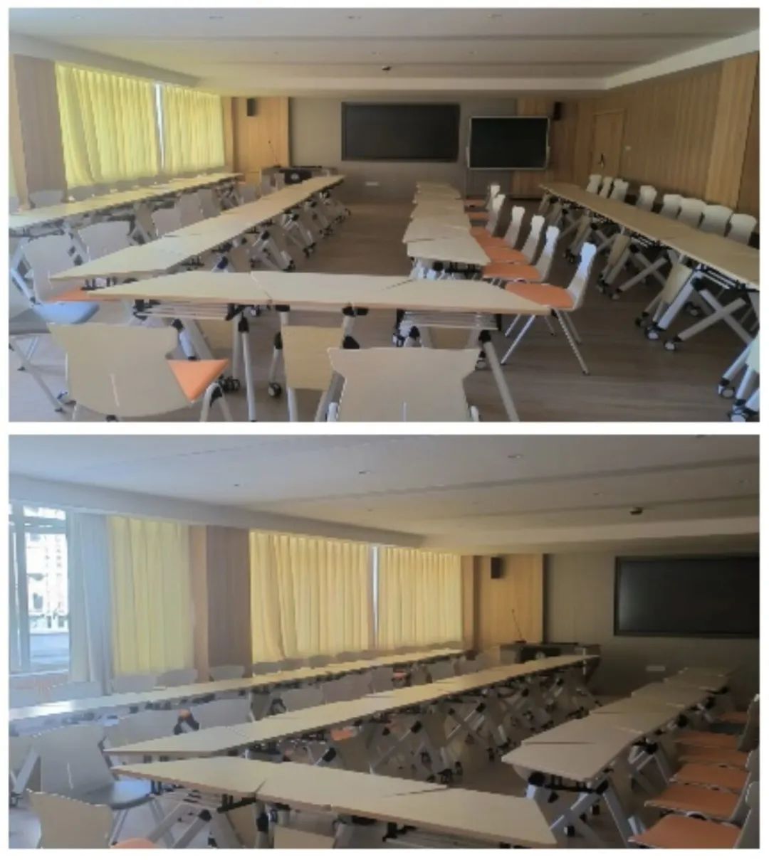 多功能厅配备有小黑板、电子屏幕及相应音响设备,可容纳60余人。多功能厅与寝室楼栋相邻,硬件设施齐全,有利于同学们讨论交流,进一步拓展了学习、文娱、社交方面的活动。内设可拆分桌椅可满足小型会议、演讲比赛、相关座谈会分享会、开展相关二课活动等需求。