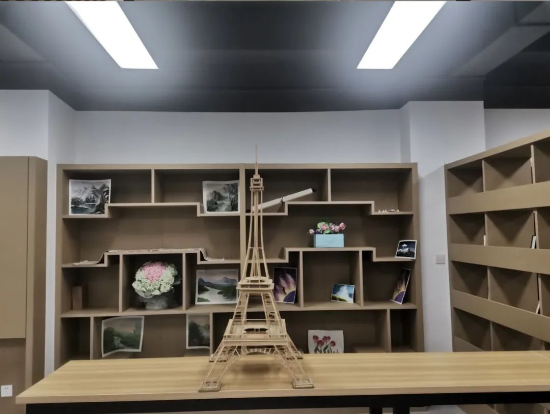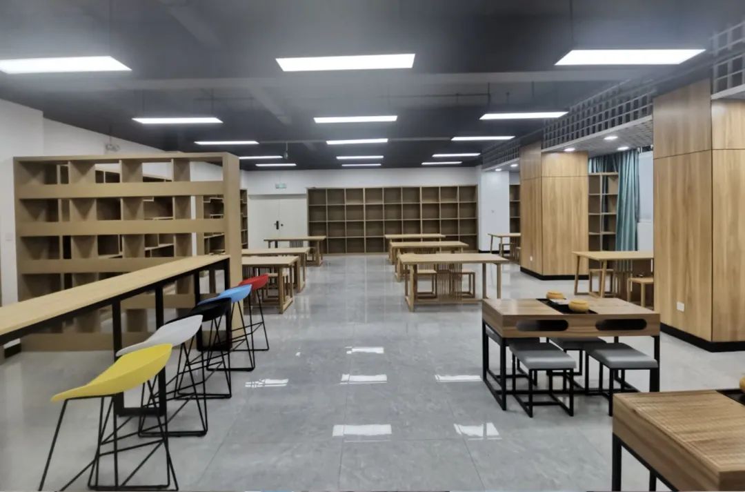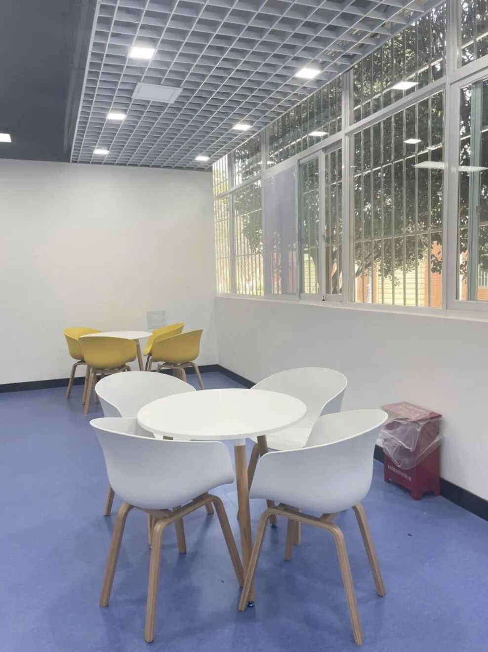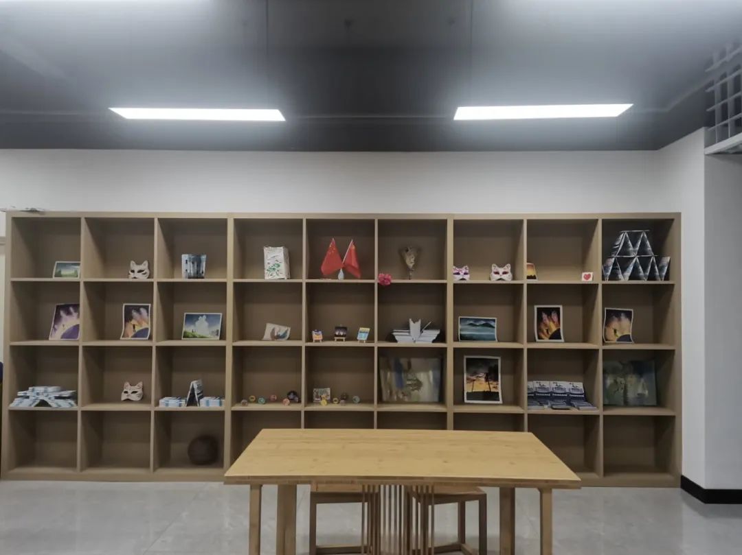 多功能会议室配备有电子屏幕及相应的音响设备,可容纳30余人,设有可拆分桌椅,可满足日常小型会议、座谈会、读书分享交流、心理团辅、演讲比赛等需求。棋牌室由作品展架、储物格环绕,设有茶几、棋桌(附带围棋、象棋)和方桌,可供同学们交流茶艺、抚琴、弈棋、挥毫和绘画。座位旁就是储物格,供大家随身物品的摆放。