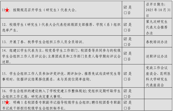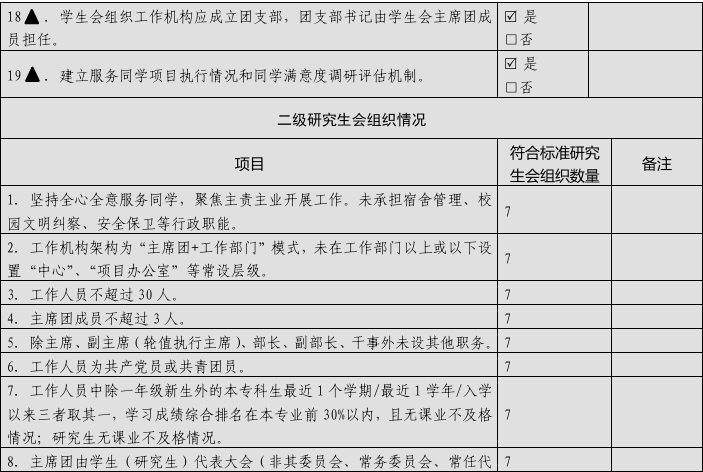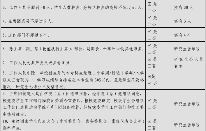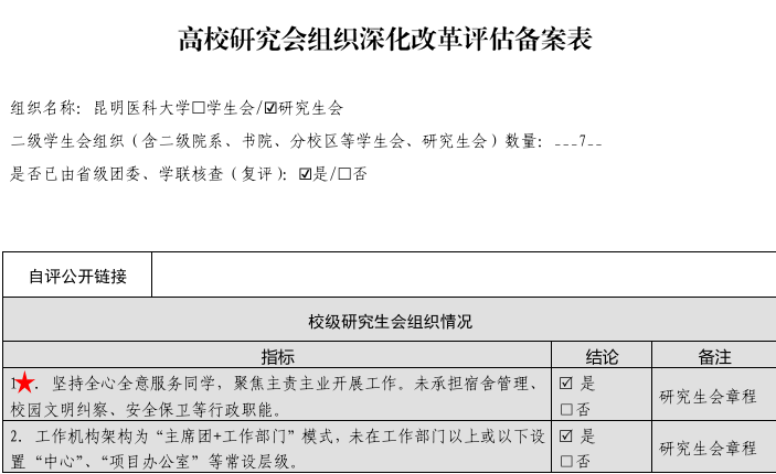 校级学生会组织改革自评表