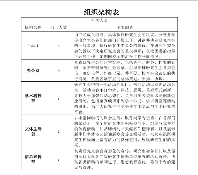 3 校级组织工作机构组织架构表