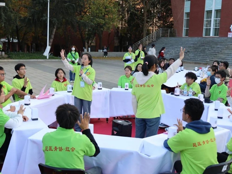 12月1日下午开展了百人狼人杀之艾滋侵袭活动展演。本次活动邀请到云南大学、云南民族大学、昆明理工大学等9所高校、12个组织共计41位代表参与,活动分为6组进行,累计开展3.5h,志愿者40余人,服务志愿时长共计200余小时,干预人数达100余人。在此项活动中,志愿者们优化了艾滋病防治工作的宣传方式,高质量推动了艾滋病防治工作“进校园”,引领同学们自主学习并传播防艾知识。