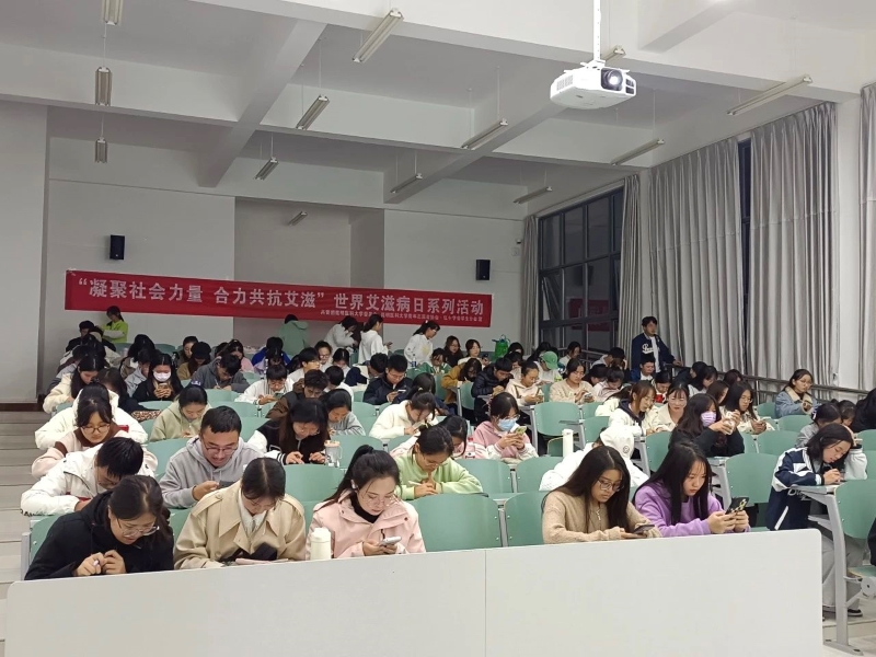 防艾纪录片观看活动中,志愿者们播放纪录片《鳄鱼波鞋走天涯》,在为时98分钟的纪录片中德斯特和艾瑞不因艾滋病而断联的友谊增强了同学们对艾滋病病人的反歧视意识。活动最后,志愿者们让同学们在书签上写下对本次活动的感想并让同学们进行扫码填写问卷。本次活动,将“预防艾滋病”的理念以纪录片观看的形式开展,让参与的150名同学在活动中接受防艾教育,达到警钟长鸣的良好效果。