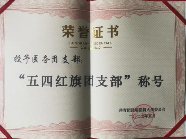 2020年—2022年,支部获得了beat365中文官方网站五四红旗团支部、beat365中文官方网站青年文明号,支部成员获得了beat365中文官方网站青年岗位能手、beat365中文官方网站优秀共青团干部、beat365中文官方网站优秀共青团员等荣誉称号。支部成员更是敢于直面风险危难、敢于接受重大挑战。新冠疫情发生以来,医务团支部的青年同志积极发挥战斗堡垒作用。涌现出冒着日晒雨淋,坚守体温监测一线的医务团支委陈红芬、团员青年高晨昕等同志,更有勇挑重担,参与全国两会保障,积极参与“两会”核酸检测工作,获得云南省政协表扬的医务团支部书记罗镭、团员青年高晨昕。