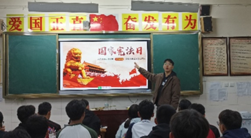 2023年12月4日,beat365中文官方网站第二届研支团在龙陵县第三中学围绕“宪法宣传周”主题开展了一系列宪法宣传活动,活动包括宪法晨读、“国家宪法日”专题讲座、征集宪法相关主题手抄报三个部分。从“国家宪法日简介、宪法守护你的一生、宪法知识小竞赛、合唱《宪法伴我们成长》”等不同方面入手,向同学们介绍了宪法在我国法律体系中的重要地位和发展历程,普及国家宪法的相关知识。