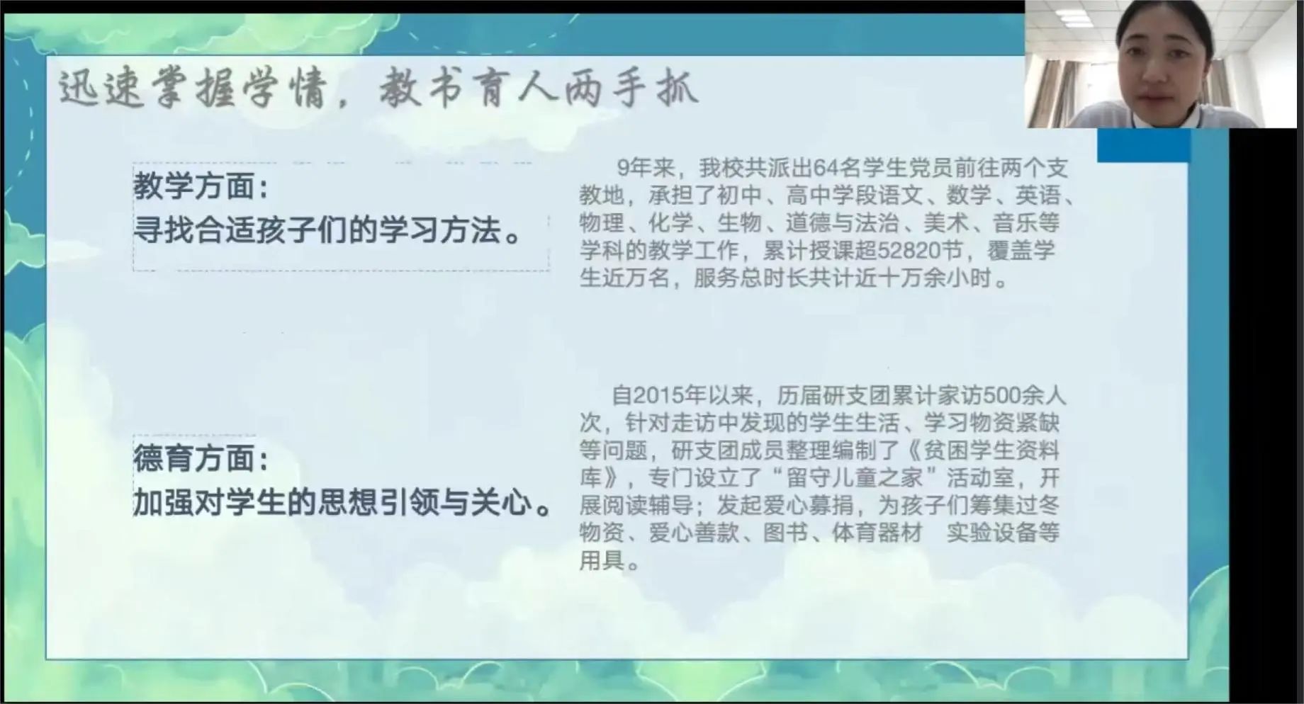 本次会议邀请了四名优秀研究生支教团成员为同学们做支教分享。