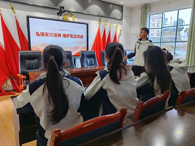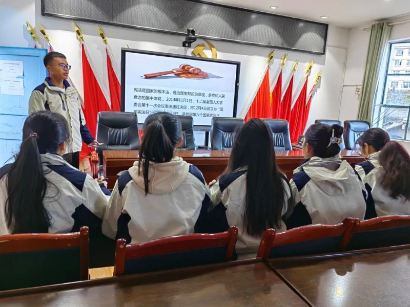 宪法宣传周期间,研支团成员王强作为班主任,组织了一场以宪法知识为主题的班会活动。通过生动的案例和深入浅出的讲解,激发了学生们学习宪法的兴趣和热情。班会最后,研支团成员王强带领全班学生共同宣誓,承诺将始终坚守宪法原则,积极践行法治精神,为构建和谐社会、法治校园贡献自己的力量。宣誓声在教室里回荡,展现了学生们对宪法的坚定信仰和崇高追求。