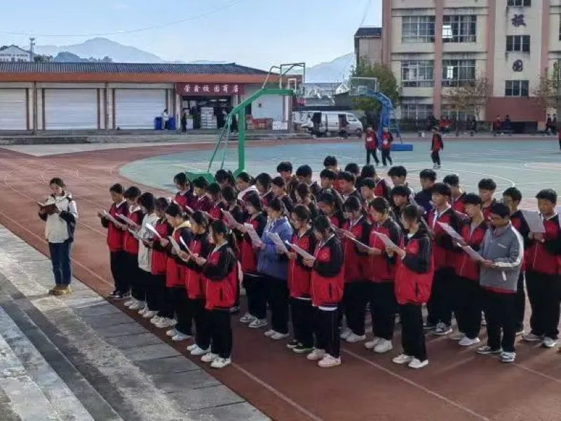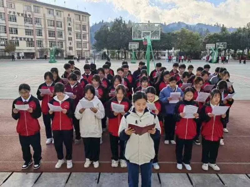 随着第一缕阳光的照射,研支团成员邱磊带领学生在操场上整齐列队,共同朗读宪法内容。洪亮的读书声回荡在校园上空,激发了师生们对宪法的敬畏之心和爱国之情。晨读活动结束后,学生们纷纷表示,通过此次活动,更加坚定了他们遵守宪法、维护法治的决心。