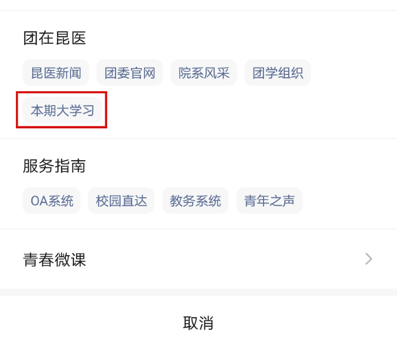 关注“云南共青团”微信公众号,点击“大学习”菜单栏参与学习。