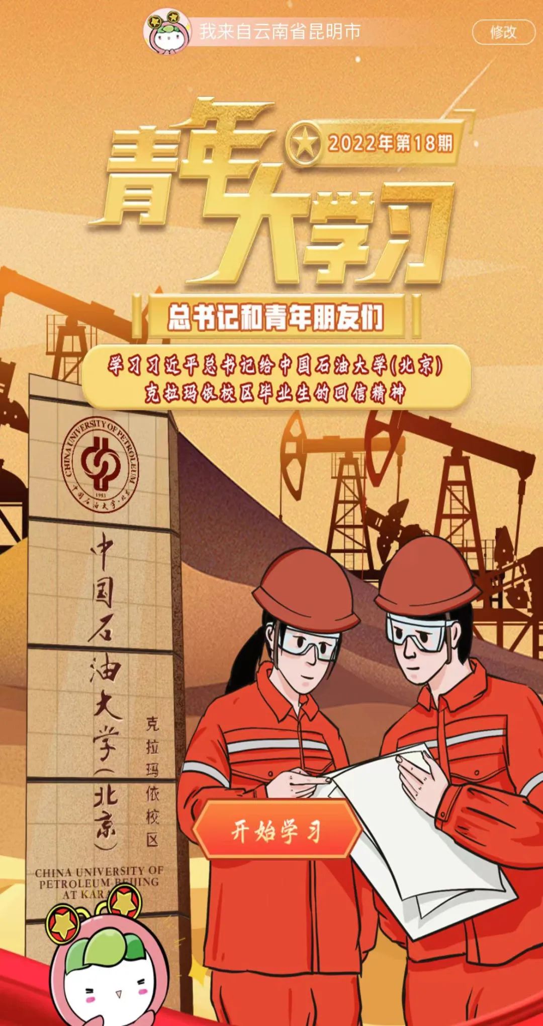 本期我们来到中国石油大学(北京)克拉玛依校区,一起学习领悟习近平总书记对青年一代的关怀与期待!
