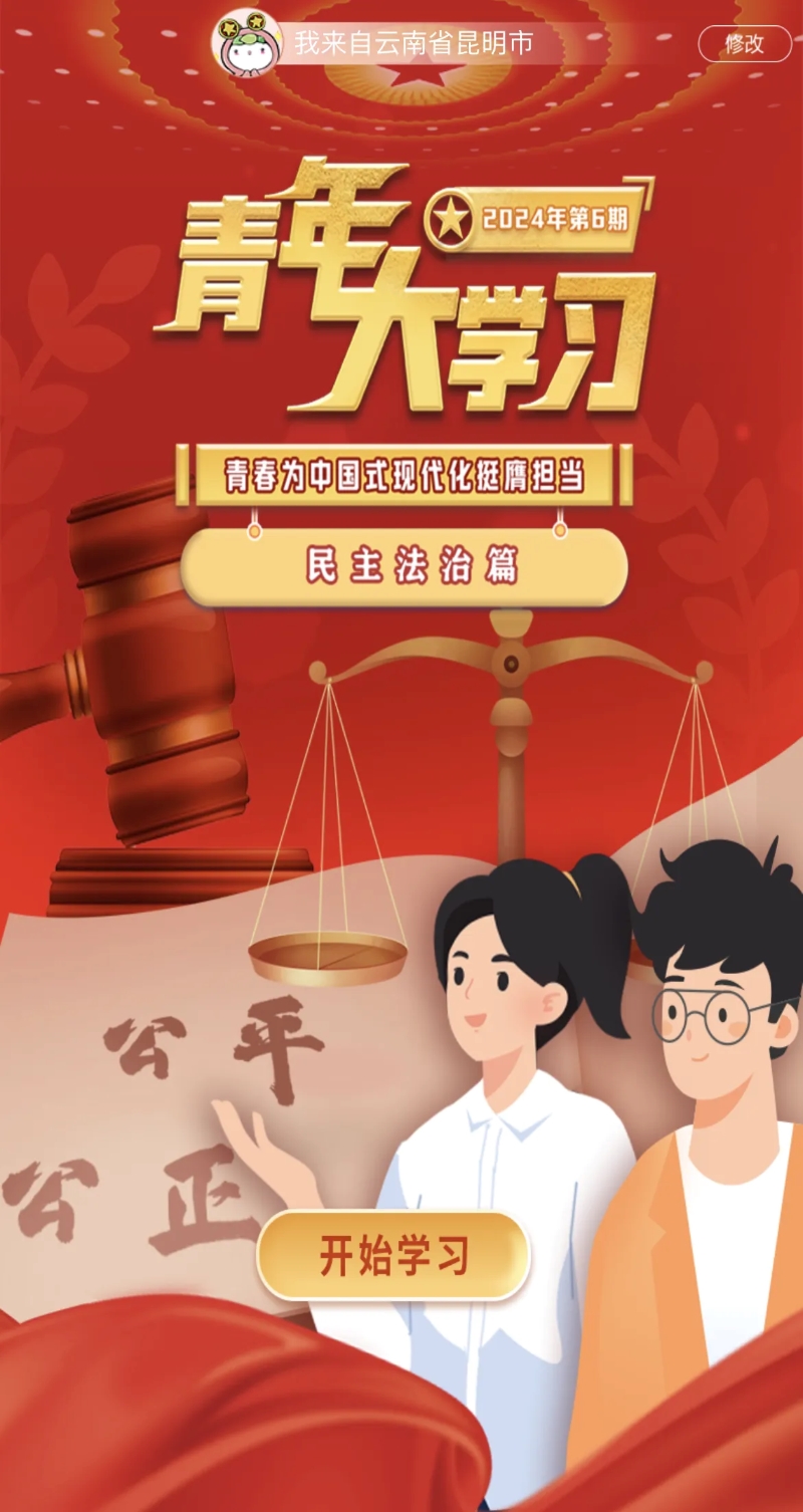 学习党的创新理论,争做新时代好青年。青年大学习推出“青春为中国式现代化挺膺担当”系列特辑,今天和大家见面的是第四期“民主法治篇”。