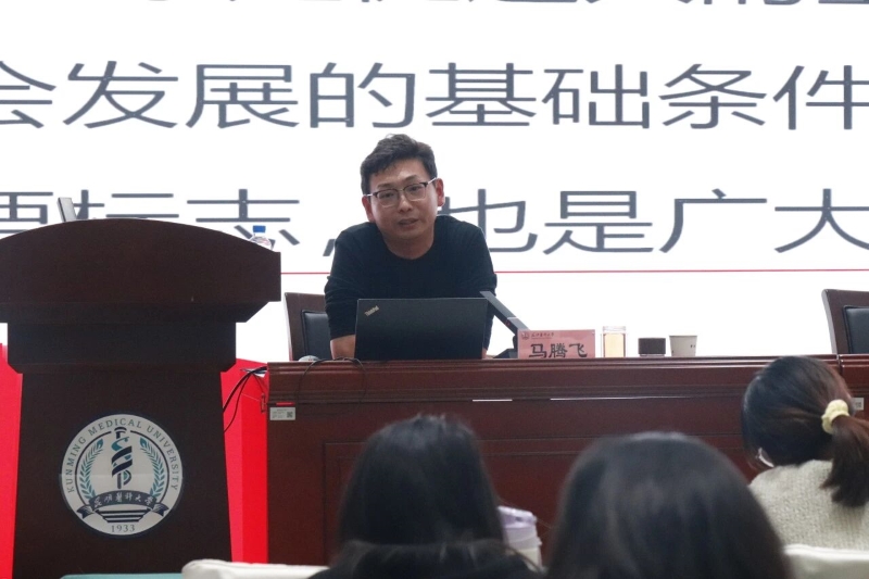beat365中文官方网站马克思主义学院副教授马腾飞老师以《健康中国 护佑人民幸福生活》为主题授课,课程围绕健康中国建设的内涵及其实践路径展开,从重视预防、提升服务质量、深化医改、重视科技创新、坚持守正创新等八个方面进行了阐述,从思想上,实践上教导学员们认真学习专业知识,提高专业技能,将自身发展融入进健康中国的建设之中。