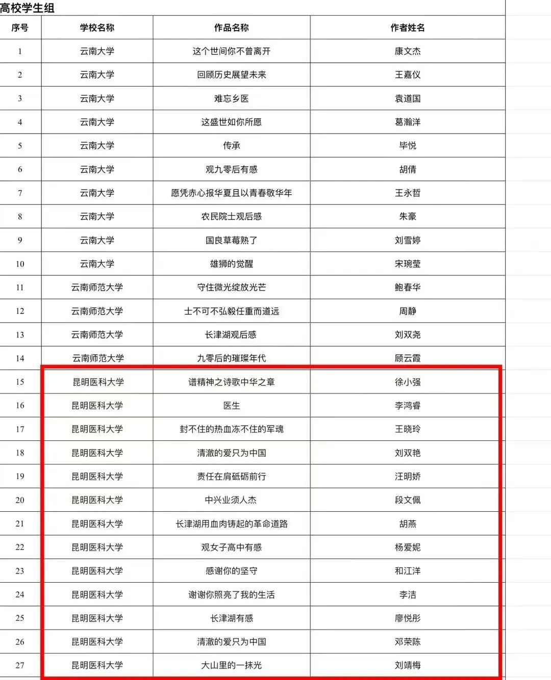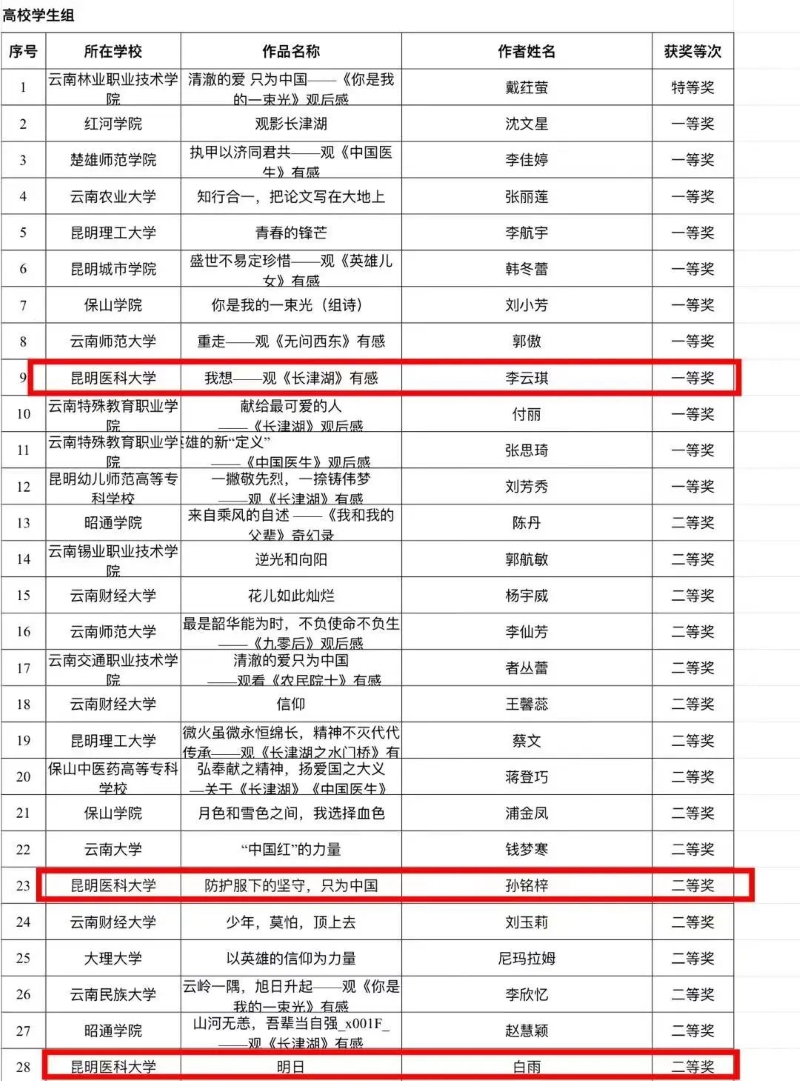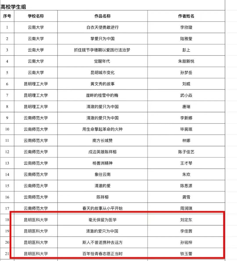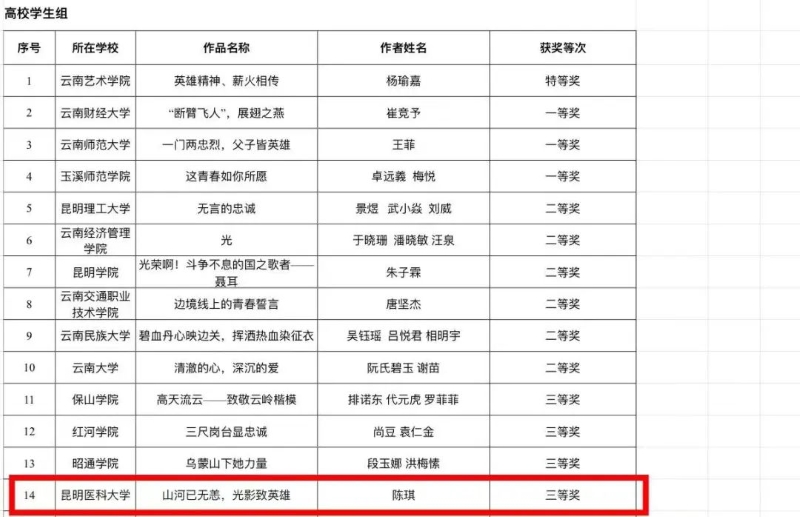近日,云南省教育系统主办了以“清澈的爱 只为中国”为主题的“看照片 讲故事”大赛和观后感征文活动,在经个人报送、学校推荐、作品审核、专家评审、网络公示等环节,评选出“看照片 讲故事”获奖作品400个,征文405篇,其中我校多名师生斩获佳绩。