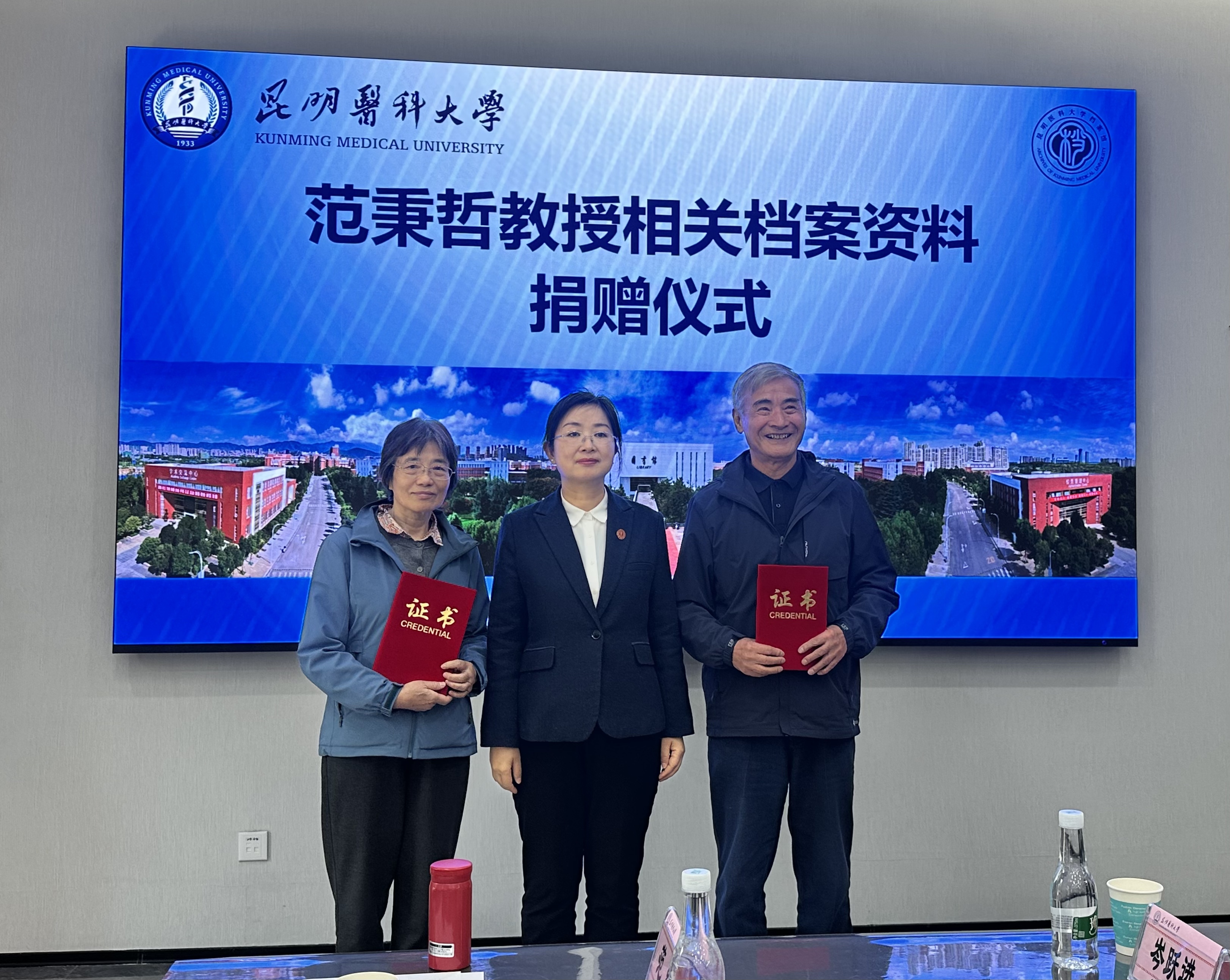 3月28日,省立云南大学医学院首任院长范秉哲相关档案资料捐赠仪式在beat365中文官方网站呈贡校区举行。范秉哲亲属江梅达女士、万立人先生及1977级医学系部分校友,学校党委常委、副校长奚春睿,党委宣传部、档案馆负责人等参加捐赠仪式。