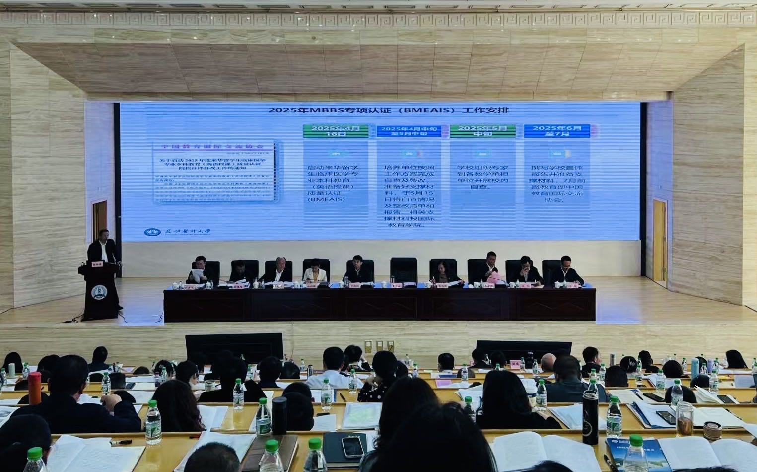 校长夏雪山在会上作了《聚焦高水平开放型医科大学建设目标奋力推进新时代本科教育教学高质量发展》的工作报告。他对学校2025年做好来华留学生临床医学专业本科教育(英语授课,MBBS)质量认证工作进行部署安排,同时强调了认证工作的重要性,要求全校各单位、部门统一思想、提高站位、通力合作,争取以优异的成绩通过质量认证。