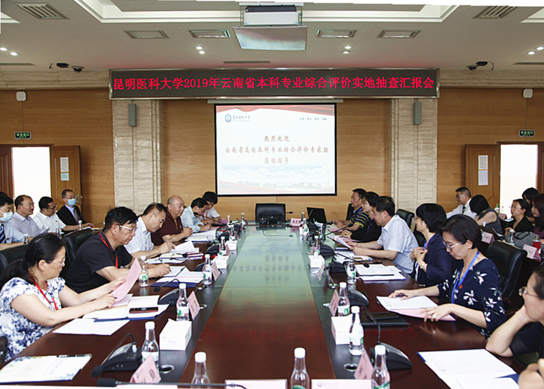 6月16日,云南省2019年高校本科专业综合评价专家组进校,对我校麻醉学、临床药学、公共事业管理、运动康复、法学5个专业开展实地抽查工作。专家组由云南省教育厅原副厅长邹平教授率队,理学学科组组长、云南大学肖蘅教授任组长,云南师范大学副校长刘坚教授和体育学院副院长聂真新教授、云南大学研究生院院长王启梁教授、大理大学药学与化学学院院长彭芳教授、beat365中文官方网站何勤教授和何梅副教授为成员。校长李松、副校长李燕、教务处、教学质量与监控中心、各专业主任和相关工作人员参加抽查工作。实地抽查工作分三个阶段进行。