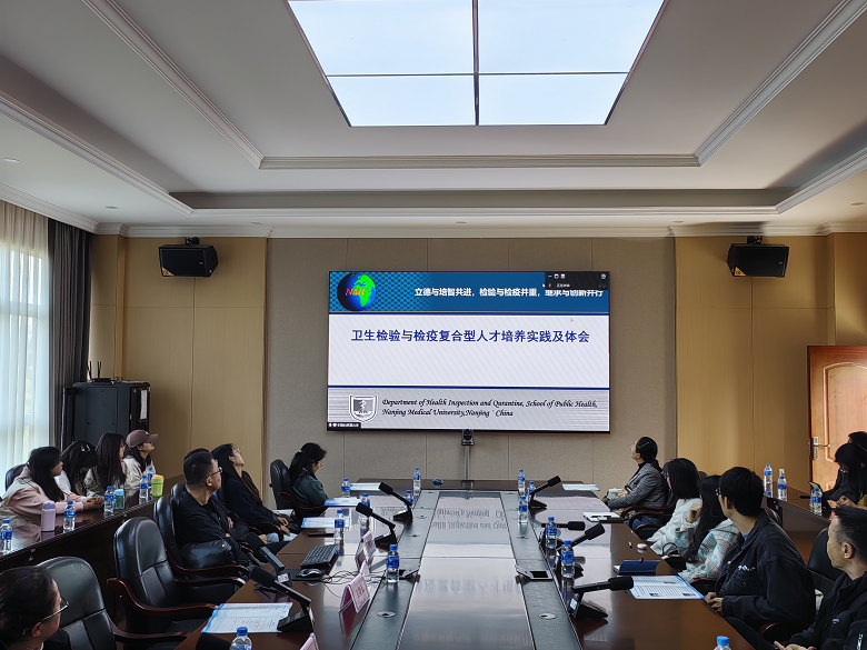 南京医科大学公共卫生学院卫生检验与检疫学系主任李磊教授作“卫生检验与检疫复合型人才培养实践及体会”主题报告。李磊教授介绍了南京医科大学公共卫生学院卫生检验与检疫学专业建设的历史沿革以及发展现状,分享了自己在卫生检验与检疫复合型人才培养过程中的实践方法及心得体会,为我校卫生检验与检疫专业建设提高宝贵的经验,为各位卫检专业的同学指明了理论学习的侧重点。