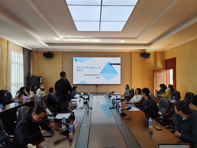 昆明市疾病预防控制中心理化检验科科长张瑞雨主管技师做“分析化学在疾控预防中心重要地位” 主题报告,以分析化学与疾病预防控制的关系为切入点,详细的介绍了分析化学专业知识在疾病预防控制中的重要作用,并以疾病预防控制中心日常检测工作为例给大家讲解了日常工作中所需要的具备的知识和技能,对各级别疾病预防控制中心的招聘要求、工作内容和薪资待遇给大家做了介绍,让同学们提前对毕业后的工作有新的认识。