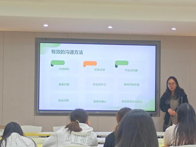 在培训过程中,白慧强调了心理工作中应保密注意事项,提醒心理委员在日常工作中要做到尊重隐私,价值中立,避免过度干预。同时强调了心理委员掌握有效沟通的方法,有利于建立良好的心理沟通桥梁。最后,白慧强调了团队合作和自我关照的重要性。心理委员不是孤立工作的,要具有与老师、班级班委、心理老师等团体合作的意识,共同为维护同学们的心理健康而努力。同时,心理委员也要学会自我关照,避免情绪耗竭与自我损耗,积极自我关注并实践自我调节,必要时寻求专业心理支持。