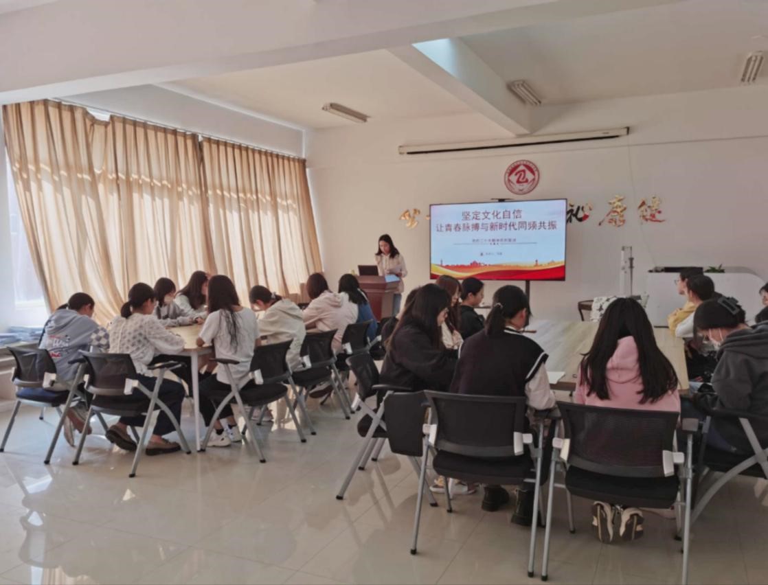 为激励广大学生从党的二十大精神中汲取前行的智慧和力量, 不断增强思想自觉和行动自觉,4月3日下午,学生第二党支部负责人马瑞老师在公共卫生学院学生中心进行了主题为《坚定文化自信,让青春脉搏与新时代同频共振》的党的二十大精神宣讲。