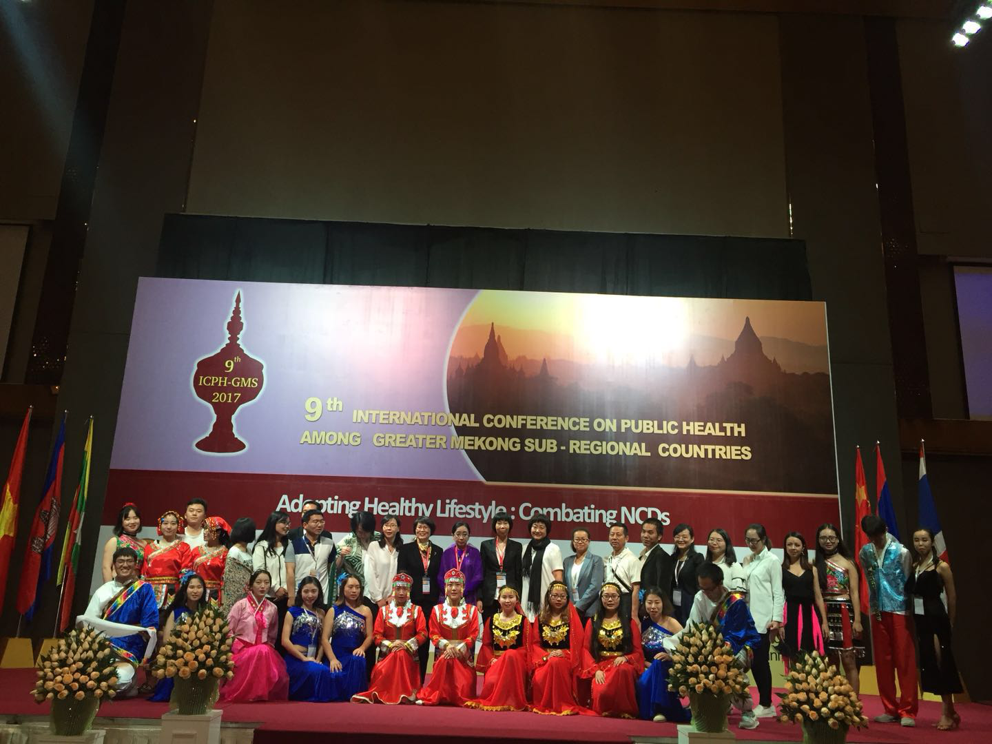 2017年11月22 --23日,由学校李燕副校长带队,公共卫生学院师生一行34人赴缅甸仰光参加第九届大湄公河次区域公共卫生大会。大会围绕从健康的生活方式预防慢性非传染性疾病(Adopting Healthy Lifestyle: Combating NCDs)主题进行了一系列专题研讨,李燕副校长和蔡乐副院长作为分会场主持,公共卫生学院16名师生在大会上作了发言,海报交流13人。大会在闭幕式上举行了隆重的接会仪式,第十届大湄公河次区域公共卫生大会将于2018年在昆明举行,由beat365中文官方网站主办。