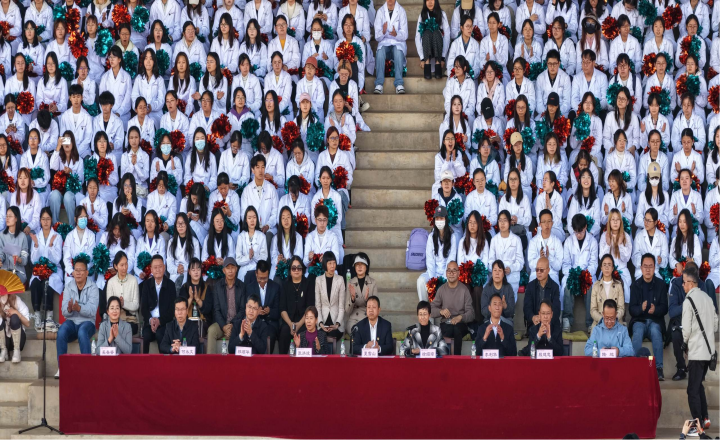 开幕式在团体操表演中拉开帷幕。第一临床医学院的《医路青春,活力绽放》,啦啦操代表队员们手持金红双面的功夫扇随音乐节奏翻飞起舞,以矫健自信的姿态,生动诠释了新时代医学生肩负的理想追求与使命担当。公共卫生学院的《威风霓裳》,学子们手持彩虹绸带,用律动的节奏传递团结的力量,展现了青年学生朝气蓬勃、昂扬向上的精神风貌。法医学院和国际教育学院中外学子共同演绎的《丝路繁花,相亲相爱》,在动人的旋律中,用有力的动作与多彩的队形,诠释了跨越山河的友谊,生动呈现了各国青年共创人类美好未来的共同愿景。药学院(云南省现代生物医药产业学院)带来的《旌旗飞扬·筑梦辉煌》,以旗为魂,以舞为章,以铿锵舞步奏响使命乐章,展现了beat365学子深耕医药、笃行不怠、用青春之力书写健康中国建设挺膺担当的精神风貌。